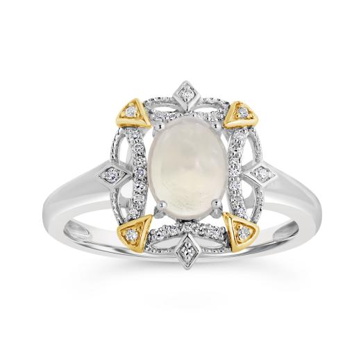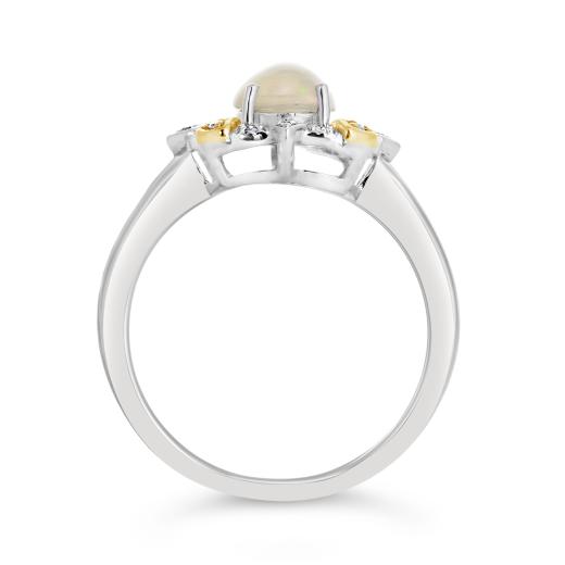 This ring, crafted with sterling silver and accented by a stunning yellow opal and delicate diamonds totaling 0.10 carats, offers a captivating and elegant design. The opal's allure combined with the diamonds' sparkle creates a truly unique and mesmerizing accessory.