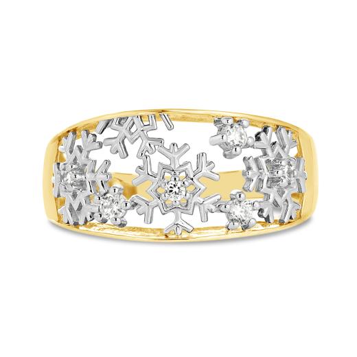 These icy-cold snowflakes will warm even the coldest hearts! Crafted in lustrous yellow gold, this ring is adorned with festive white gold flakes set with shimmering cubic zirconia's. Buy this precious piece for yourself or for that special person in your life.