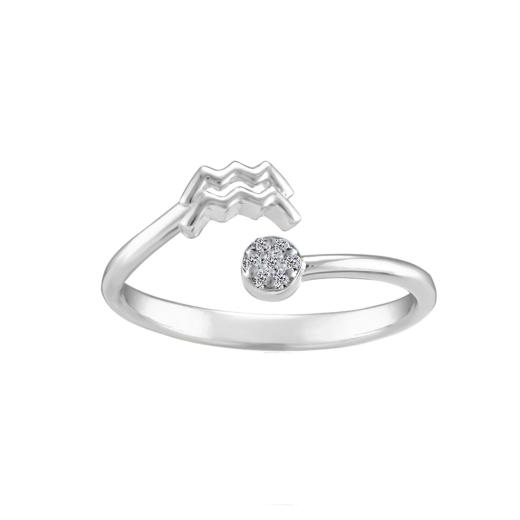 The ring features the Aquarius symbol, elegantly engraved and adorned with sparkling diamonds, adding a touch of luxury and personal significance. Crafted from high-quality sterling silver, the ring offers both durability and shine.