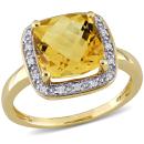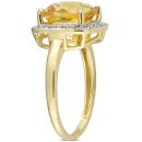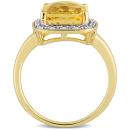 This brilliance cocktail ring features is cushion checkerboard-cut citrine gemstone and round-cut white diamonds set in yellow gold. The beautiful ring is glimmers with high polished finish.