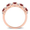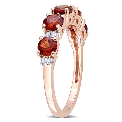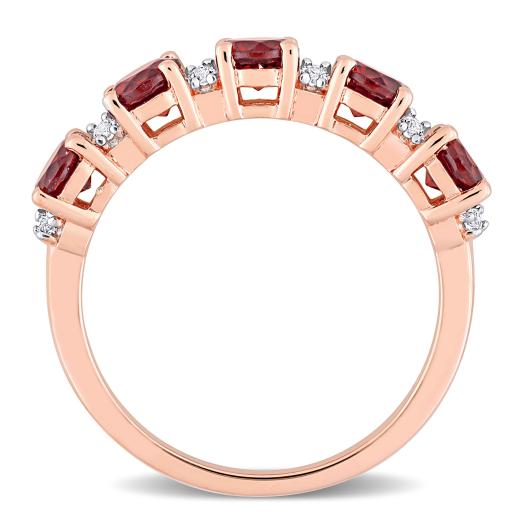 This fabulous stacking five-stone anniversary ring is crafted in rose plated sterling silver. This pretty wedding ring features alternating round-cut garnet and round-cut white topaz gemstones. Enhanced with a high polish finish, this stackable eternity ring is the perfect addition to any jewellery collection. Whether worn as an anniversary band, wedding band or simply a gorgeous gemstone accessory, this ring is a great gift for a woman with a classic and trendy sense of style.