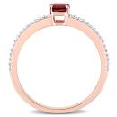 Elegant yet eye-catching, this ring is perfect for those seeking a unique and timeless piece that exudes both luxury and style. The rich red hue of the garnet beautifully contrasts with the warm rose gold band, adding depth and sophistication to the design.