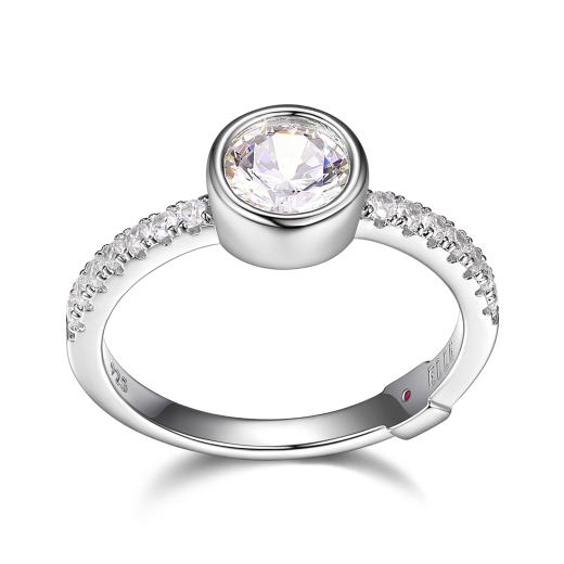 The Elle Sphere Ring features a sleek, modern design with a bold spherical accent that adds a touch of contemporary elegance. Its minimalist style makes it versatile enough to wear alone or stacked with other rings.
