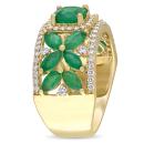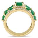 This bold and bright emerald and diamond anniversary band from the Collection is crafted in lustrous 14-karat yellow gold and features a cushion-cut, prong-set emerald gemstone at its center, paired with 12 marquise-cut, prong-set emerald gemstones and 62 round-cut, prong-set diamonds in halos as well as along the top portion of the band. Whether worn as an anniversary band or as a gorgeous gemstone and diamond piece, this ring is sure to make a standout addition to any jewellery collection. Choose this glowing piece of jewellery either for yourself or as a special gift for someone you love.