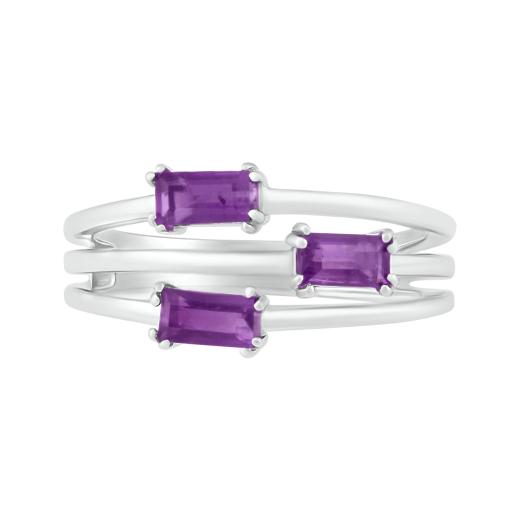 Add some vibrant colour to your look when you wear this unique Amethyst ring. Mounted in gleaming sterling silver, it features three baguette-cut amethyst stones. This gemstone ring has been enhanced with a beautiful high polish finish and is an ideal choice for today's contemporary person. Gift this gemstone ring as a wonderful token of love and make them feel special.