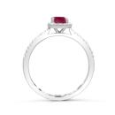 This stunning ruby and diamond halo ring is a true show stopper. It is the perfect ring to show them just how much you care. It is the perfect addition to your attire and it has the perfect classic look for anyone. A truly stunning piece!