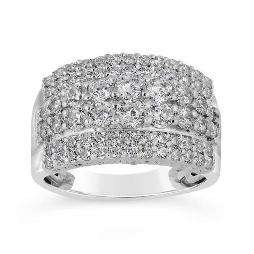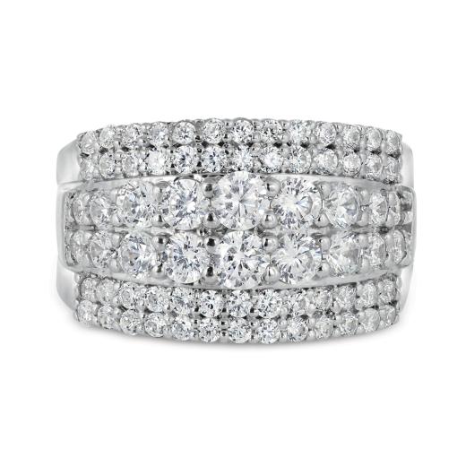 The 10K white gold multi-row 1.50CTW diamond band is a statement piece that exudes opulence and sophistication. It is perfect for special occasions or as a bold and luxurious everyday accessory.