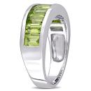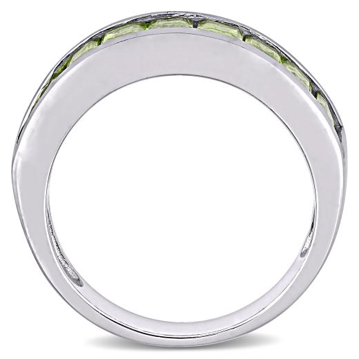 Gorgeously romantic, this trendsetting Peridot Semi-Eternity Anniversary Ring makes a colorful addition to any jewelry collection. Mounted in glittering sterling silver, it features nine baguette-cut, channel-set peridot gemstones (5 x 3mm) resting in a line forming a semi-eternity style. This gemstone ring is enhanced with a high polish finish for added shine. Gift this distinctive anniversary ring to your beloved to surprise her and make her feel special.