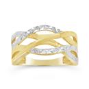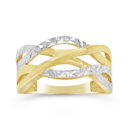 This attractive celtic style ring features a stunning diamond cut pattern. This enchanting ring is crafted in lustrous 10K yellow and white gold, and shimmers with a high polish finish.