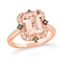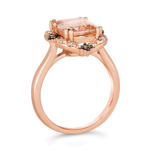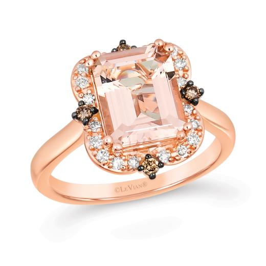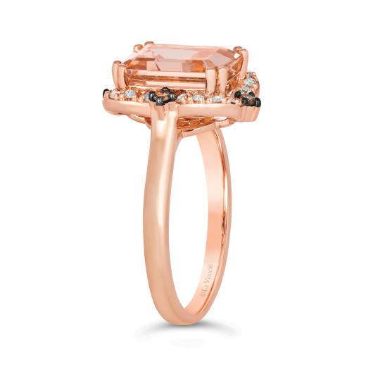 The Le Vian 14K Rose Gold Morganite and Diamond Ring showcases a delicate, blush-pink morganite center stone set in luxurious 14K rose gold. Sparkling diamonds surround the morganite, adding brilliance and elegance to the design.