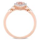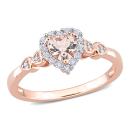This charming halo heart engagement ring is crafted in rose plated sterling silver. This stunning wedding ring features a heart-cut, prong-set morganite center stone along with 14 round-cut white topaz gemstones and four round white diamonds. The magnificent five-stone gemstone and diamond ring is a valuable addition to any jewelry collection. Whether worn as a gemstone bridal, cocktail ring or simply a gorgeous gemstone accessory, this ring is a great gift for a woman with a classic and trendy sense of style. Pair it with your favorite casual, professional or dressy outfit and look gorgeous.