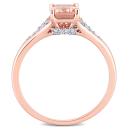 This pretty clustered engagement ring is crafted in 10-karat rose gold. This magnificent wedding ring features an octagon-cut morganite center stone adorned with 18 round-cut sparkling diamonds beautifully clustered on the band, to add sparkle and elegance to your look. Show that special someone how much you love them with this gorgeous gemstone and diamond ring and make her feel like a princess. A stunning addition to your jewelry collection.