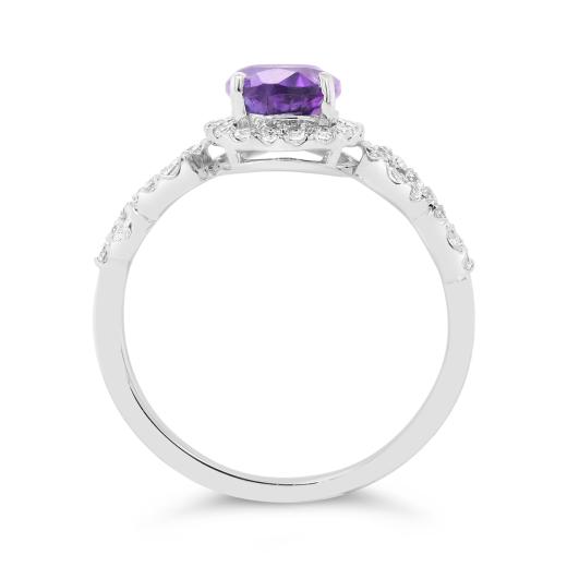 Gift yourself or your beloved this flattering amethyst and white zircon halo, infinity cocktail ring, crafted in radiant white gold. This ring showcases a pear cut amethyst gemstone at the centre surrounded by glittering genuine white zircon gemstones. Polished to brilliance, this ring is a staple for any jewellery collection. A beautiful blend of classic and modern style, this gemstone cocktail ring will add extra elegance to your everyday look.