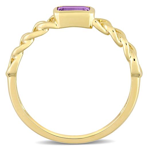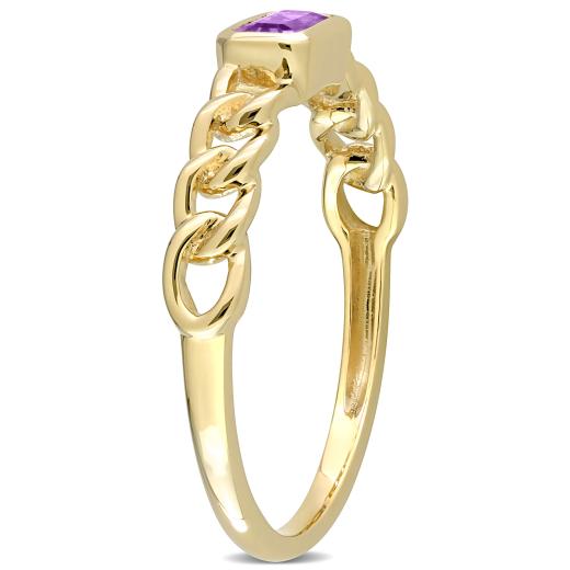 This pretty stackable link ring is crafted in 10-karat yellow gold and features an octagon-cut, bezel-set amethyst gemstone at the center with links along its band. Enhanced with a high polished finish, this gemstone ring is the perfect addition to any jewelry collection. Pair this trendsetting ring with any business or casual outfit and look elegant.