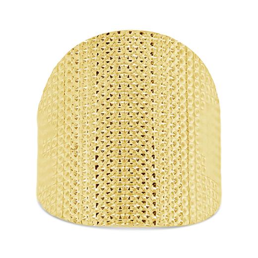 Crafted in the luster of 10k yellow gold is a stylish and modern ring. The ring is enhanced by diamond cut pattern that gives definition to the design. A ring that can be worn with casual or work wear and surely to be noticed by all. Buy this beautiful piece for yourself or for that special someone in your life.