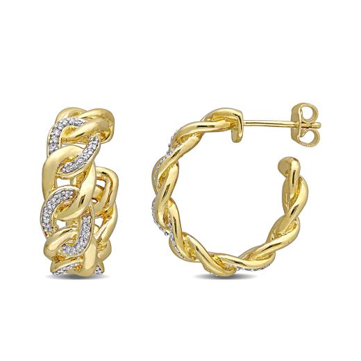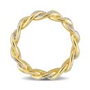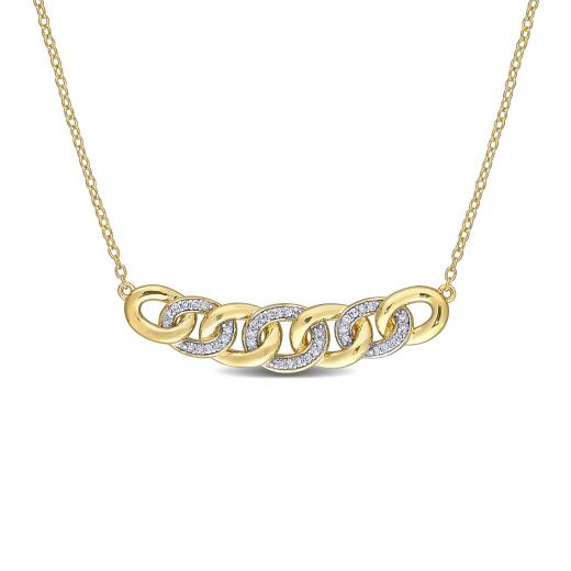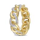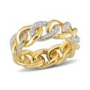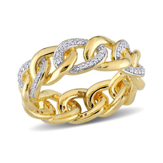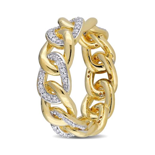 This sparkling alternating link eternity ring is crafted in yellow plated sterling silver. This open chain design features alternating diamond and polished open curb links. Enhanced with a high polish finish, this wedding ring features 84 round-cut, pave-set white diamonds and is a must have in every jewelry collection. This diamond ring is sure to make a special gift for someone you love.