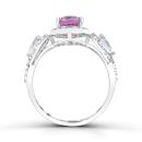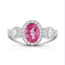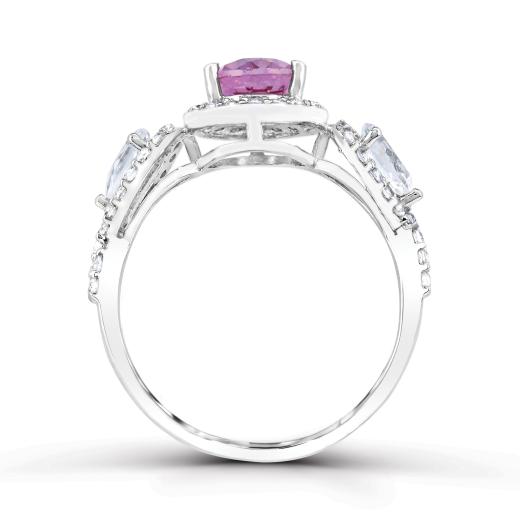 This classic halo style ring is crafted in lustrous sterling silver and features pink and white topaz gemstones. This ring is sure to add a touch of sparkle to any ensemble. A perfect gift for that someone special in your life!