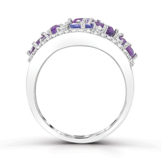 This fantastic cocktail ring is set with amethyst, tanzanite and shimmering white topaz gemstones. Crafted in cool, gleaming sterling silver, this ring will make you standout in any crowd!