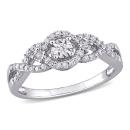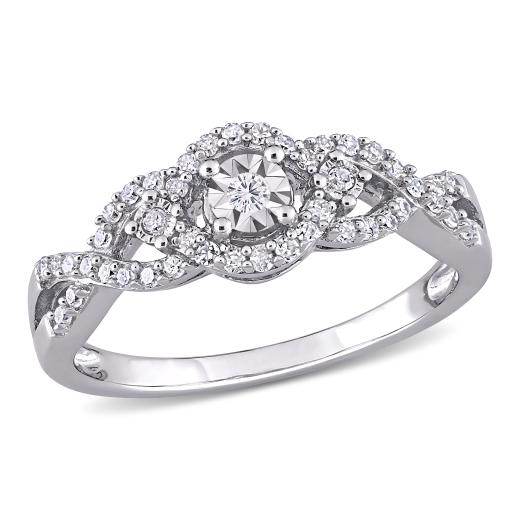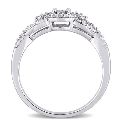 This extraordinary infinity halo engagement ring is crafted in luminous sterling silver. This gorgeous crossover wedding ring features 45 round-cut diamonds beautifully set in a unique pattern. Whether worn as a promise ring, engagement ring or simply a dainty diamond addition, this diamond ring is sure to make a beautiful versatile addition to any jewelry collection. Add glittering elegance to your ensemble and look stunning.