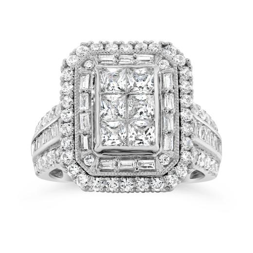 The breathtaking 14K White Gold 2.50CTW Diamond Fashion Ring is a true masterpiece that combines the brilliance of diamonds with the elegance of white gold. This ring is designed to make a statement, exuding opulence and luxury.