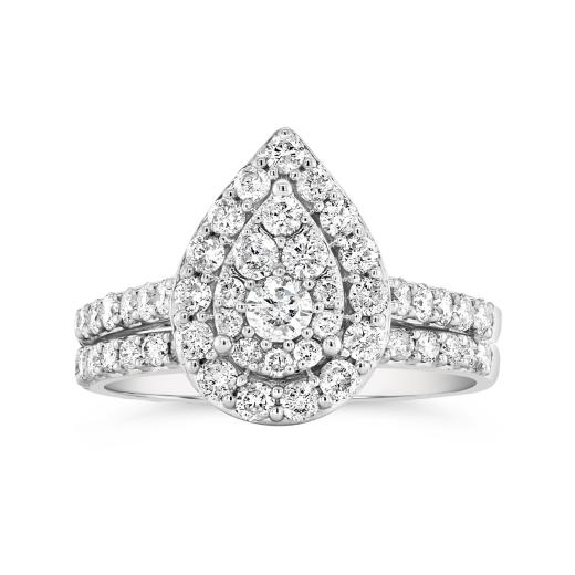 Embrace the radiant union of love and beauty with our 10K White Gold 1.25CTW Diamond Bridal Set. This stunning set is a true embodiment of elegance and sophistication.