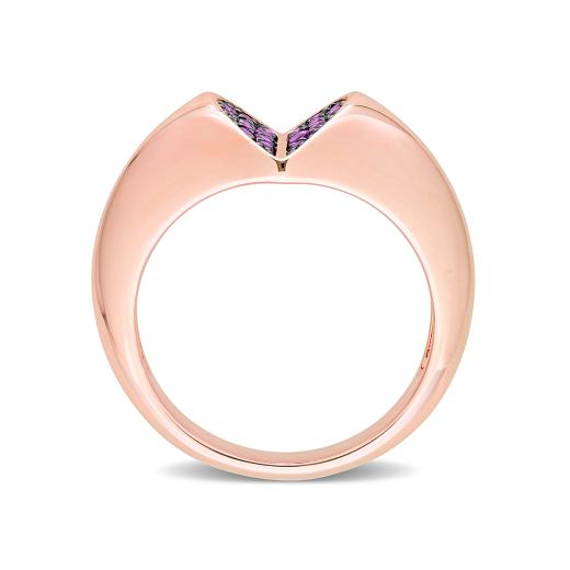 You simply cannot go wrong with this pretty heart cluster ring. Expertly crafted in lustrous rose plated sterling silver, this intricate ring showcases 20 round, pave-set African amethyst gemstones clustered into a heart shape sinking into the ring band. Polished with a brilliant finish, this distinctive ring is a versatile accessory.