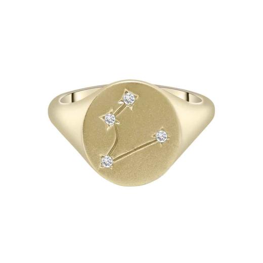 Introducing the exquisite Zodiac 10K Yellow Gold Diamond Pisces Signet Ring, a captivating piece that combines the allure of yellow gold with the celestial beauty of diamonds.