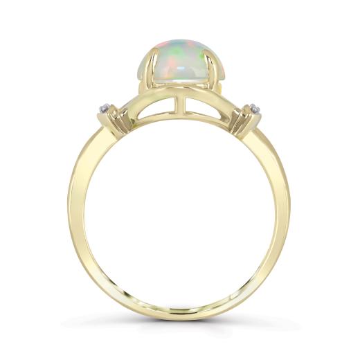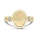 Captivating and unique, this 10K Yellow Gold Opal & Diamond Ring combines the mesmerizing play of colour in the opal with the brilliance of sparkling diamonds. The warm yellow gold setting enhances the vibrant hues of the opal, while the diamonds add a touch of sophistication.