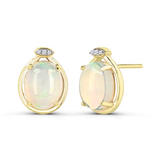 10K Yellow Gold Opal & Diamond Earrings
