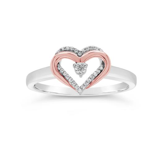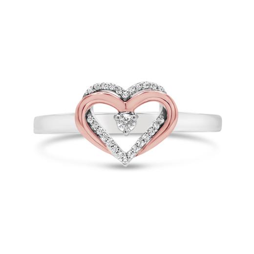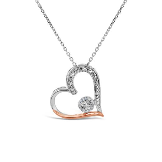 Sterling Silver & 10K Rose Gold 0.04CTW Diamond Heart Pendant