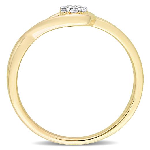 This lovely infinity promise ring is crafted in lustrous yellow plated sterling silver and features seven round-cut, pave-set diamond accents studded in a beautiful floral design with infinity shank. Enhanced with a high polished finish, this gorgeous ring is the perfect addition to any jewelry collection. Coordinate this infinity promise ring with any other ring or wear it alone.