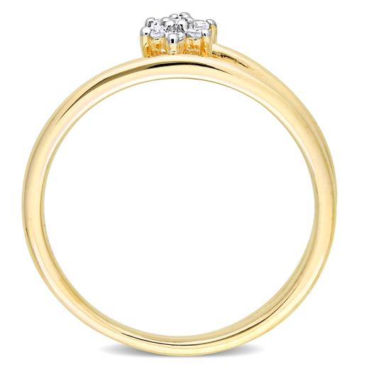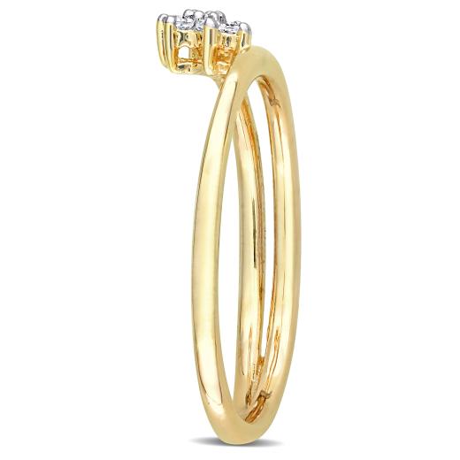 This sophisticated floral wrap promise ring is crafted in lustrous yellow plated sterling silver and features seven round-cut, prong-set diamonds studded in a floral design. This lovely wrap shank creates a unique addition to the ring. Make that promise with this romantic little luxury promise ring. Of all the luxurious gifts, a promise to be forever is the greatest of gifts you can give to someone.