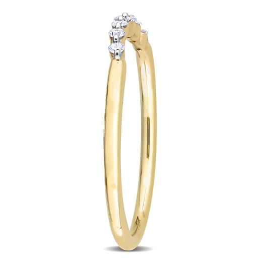 This pretty stackable semi-eternity band is crafted in 10-karat yellow gold. This sleek diamond ring features seven round-cut shimmering diamonds that are beautifully embellished on the ring in a prong setting. Enhanced with a high polished finish, this exquisite style is lovely alone or paired with her diamond engagement ring. This diamond ring is a beautiful reminder of your timeless romance. Celebrate your everlasting love story with this stacking wedding ring.