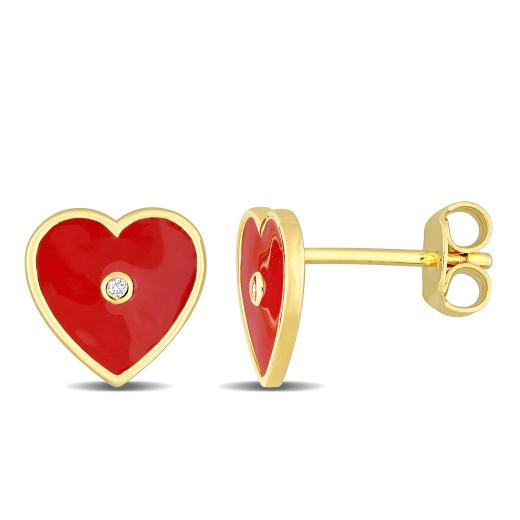 This charming heart enamel ring is crafted in lustrous yellow plated sterling silver and features a round-cut, bezel-set created white sapphire gemstone studded at the center of the red enamel. Win Mom's heart with a perfect birthday or Mother's Day gift when you present her with this heart red enamel ring. Polished to a brilliant shine, this ring is the perfect addition to any jewelry collection.