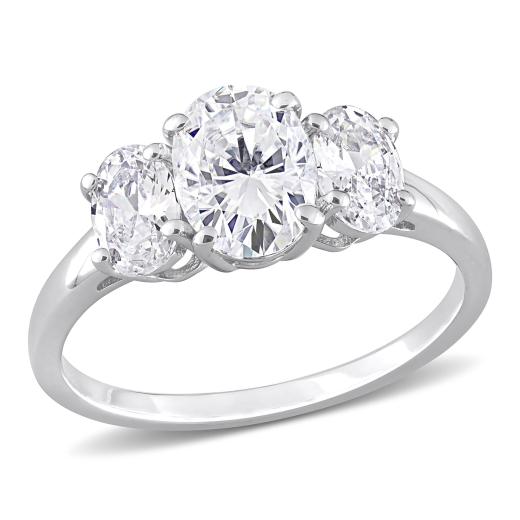 Give yourself a gorgeous look with this Cubic Zirconia 3-Stone Engagement Ring. Crafted in lustrous sterling silver, it features three oval-cut, prong-set cubic zirconia gemstones (8 x 6mm). Enhanced with high polish finish, this flickering ring is the perfect addition to any jewelry collection. Add some shimmer to your outfit with this glamorous 3-stone engagement ring.