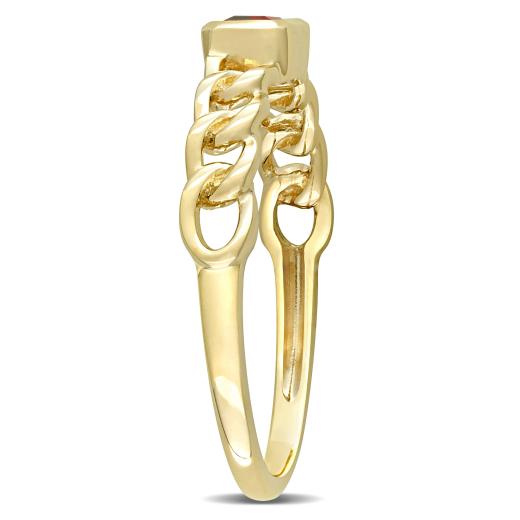 The Julianna B 10K Yellow Gold Garnet Link Ring is a stylish and elegant piece of jewellery that artfully combines the rich beauty of garnet with the classic allure of yellow gold. This ring features a unique linked design that adds a touch of sophistication to the piece.