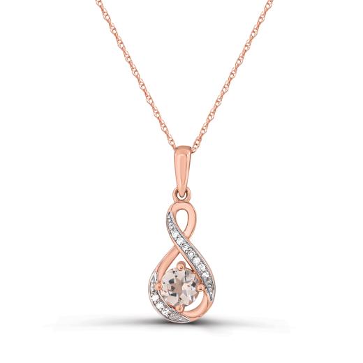 10K Rose Gold Morganite and Diamond Infinity 17" Pendant