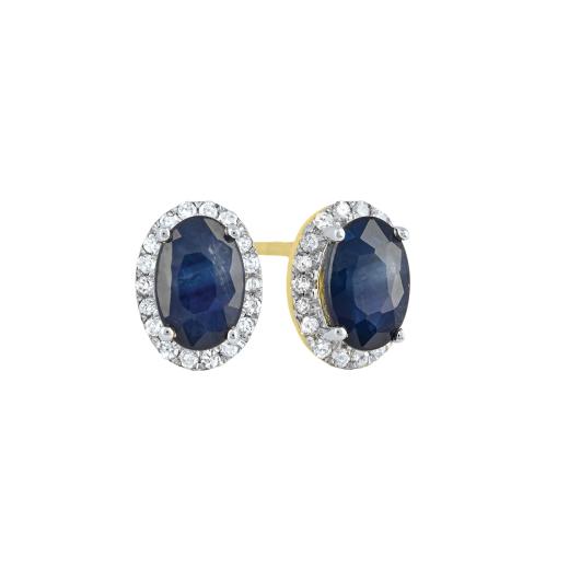 10K Yellow Gold Sapphire and Diamond Halo Earrings