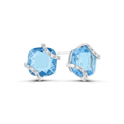 10K White Gold Swiss Blue Topaz and Diamond Earrings