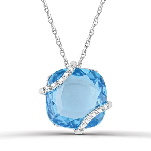 10K White Gold Swiss Blue Topaz and Diamond 18" Pendant