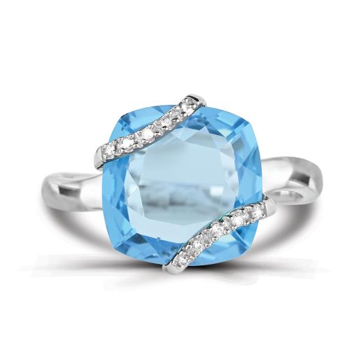 This modern 10k white gold ring accented with dazzling diamonds is sure to become a favourite item in your jewellery collection. This item is perfectly adorned with genuine blue topaz which is the birthstone for December. If you are looking for something stunning, order this for yourself or someone you love today!