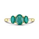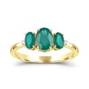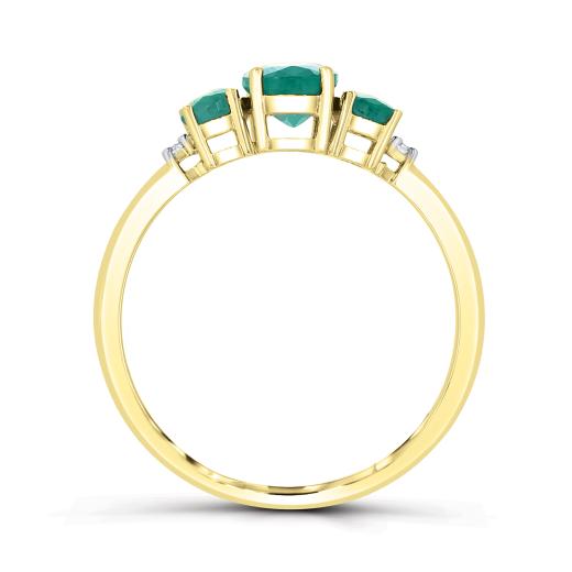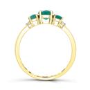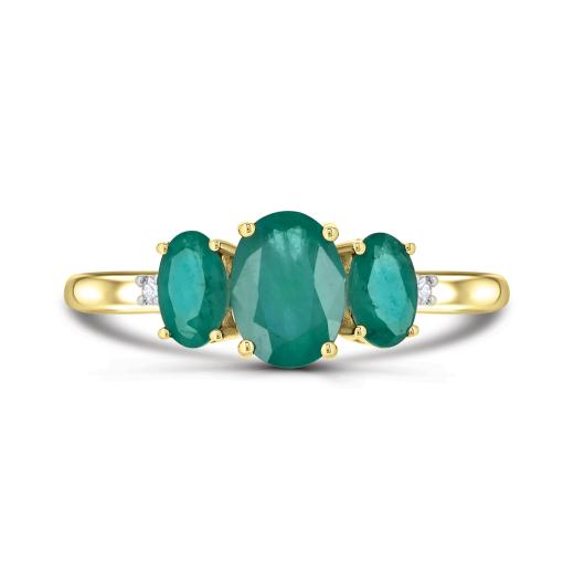 Keep your past, present and future bright and cheerful with this stunning trio of oval emeralds, claw set in lustrous 14k yellow gold. Accented with dazzling diamonds, this ring is a romantic symbol of your lasting love.