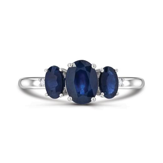 Keep your past, present and future bright and cheerful with this stunning trio of oval sapphires, claw set in lustrous 14k white gold. Accented with dazzling diamonds, this ring is a romantic symbol of your lasting love.