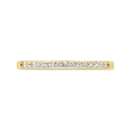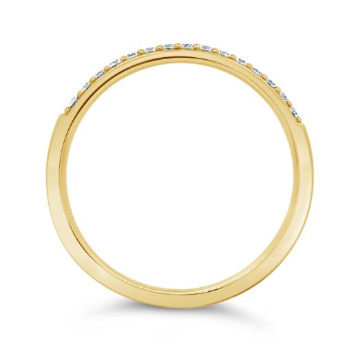 The warm glow of 14K yellow gold enhances the elegance of the design, creating a timeless piece that symbolizes the enduring connection between two hearts. With a total carat weight of 0.15, the Canadian diamonds capture and reflect the light, adding a touch of sparkle to every moment. Whether worn alone or paired with other rings, this anniversary band is a meaningful and radiant representation of your enduring commitment and shared journey.