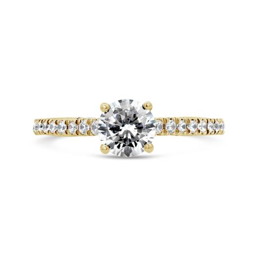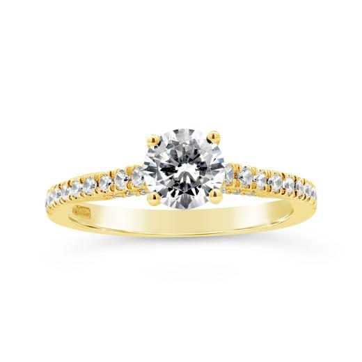 Crafted in radiant 18-karat yellow gold, this bridal ring features a stunning arrangement of lab-grown diamonds totaling 1.33 carats. The design, curated by the renowned Jenny Packham, combines the warmth of yellow gold with the brilliance of lab-grown diamonds, creating a captivating and elegant piece. This bridal ring captures the essence of timeless beauty and modern elegance, making it a breathtaking choice for a bride seeking a luxurious and ethically conscious symbol of eternal commitment.