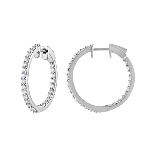 14K White Gold Lab Grown 1.00CTW Diamond Hoops