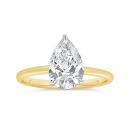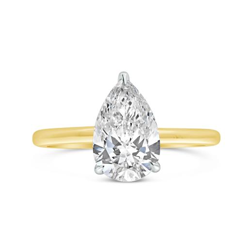 Experience unparalleled sophistication with the New Brilliance 14K Yellow Gold Lab Grown Pear Cut Diamond Ring, featuring a hidden halo and a 14K white gold head for a captivating contrast. Boasting a mesmerizing 2.08 carat total weight, this ring showcases lab-grown diamonds that sparkle with brilliance. Make a bold statement of timeless beauty with this exquisite piece, marrying classic elegance with a modern sensibility.