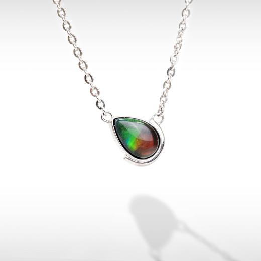 KORITE ESSENTIALS Sterling Silver Tear Drop Ammolite 16-18" Pendant