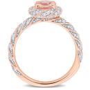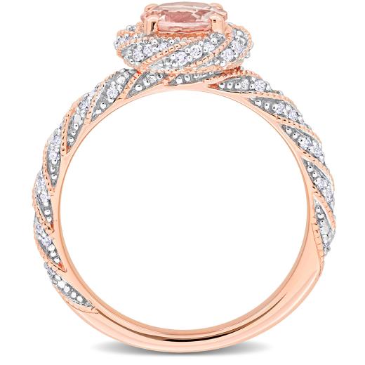 The use of rose gold complements the warm tones of the Morganite, creating a romantic and feminine appeal. The incorporation of diamonds and white sapphires adds a subtle sparkle to the overall design, enhancing the beauty of the ring. The choice of materials and gemstones makes this ring a versatile accessory suitable for various occasions, from casual to formal settings. It's a sophisticated and fashionable piece that combines the charm of Morganite with the brilliance of diamonds and white sapphires in a rose gold setting.