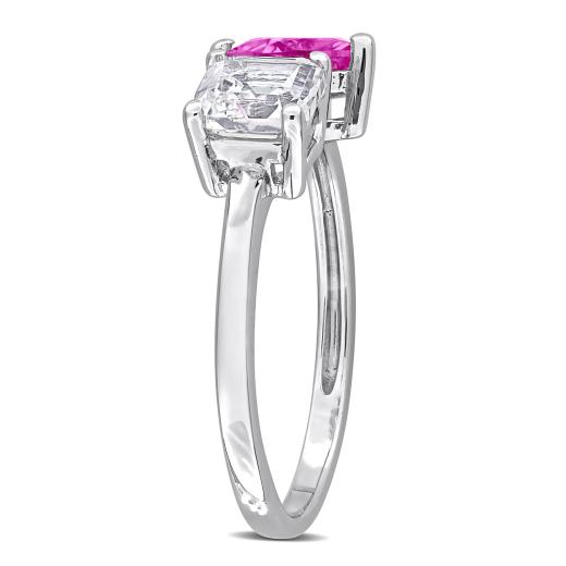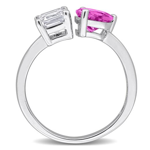 Express your love with this charming open heart ring adorned with created pink and white sapphires. Crafted in sterling silver, this ring boasts a total gemstone weight of 2 1/2 carats, exuding romance and elegance. Its delicate design and sparkling gemstones make it a perfect accessory for special occasions or everyday wear, adding a touch of whimsy to your look.